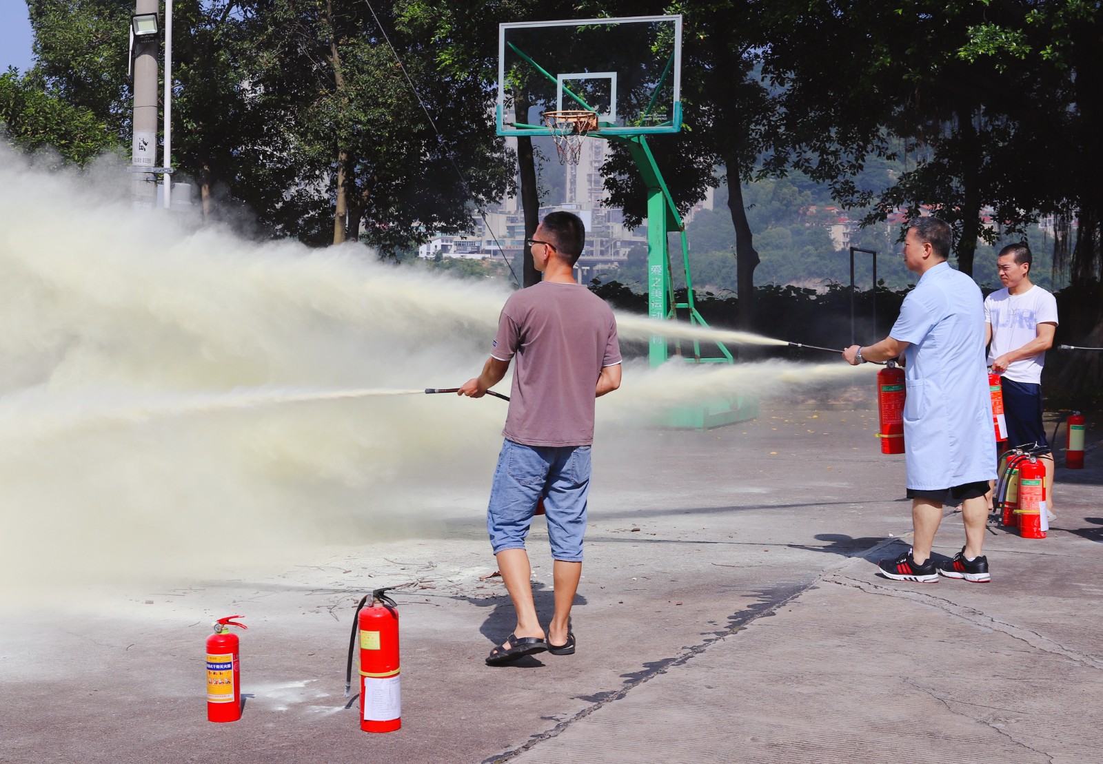 为了让公司各岗位人员深入地了解消防应急常识,切实树立起消防意识,真正掌握好火灾事故现场应急扑救与救护的作业流程,并具备自救互救与抗击突发事件的应变能力,能有组织、有顺序、迅速地引导员工安全、快速地疏散,学会正确使用灭火器以及掌握逃生的方法。今天,我公司全体人员冒着炎炎夏日在公司操场上举行了手提式灭火器的演练。